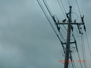 電柱に止まって
