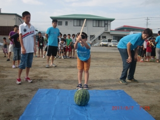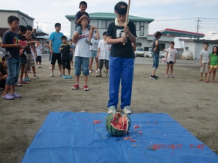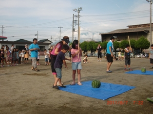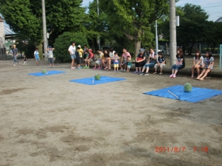 ラジオ体操とスポーツ公園清掃後・・・お楽しみ『スイカ割り』です