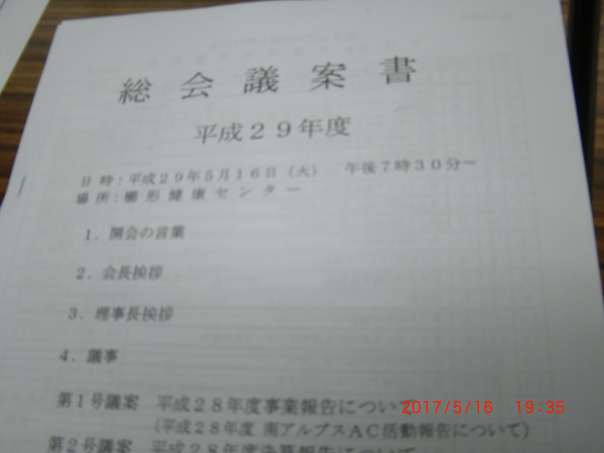 1.日 時 平成29年 5月 21日(日)午後7時30分