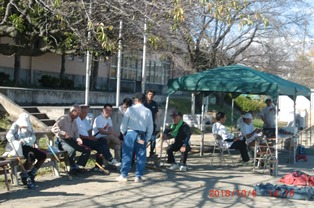 外に出て、近所の人とどうするか話す。