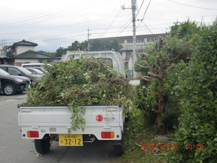 庭木の伐採   7人で行いましたがスズメ蜂の巣があり作業中止。