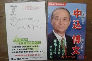 中込市長誕生に尽力を尽くした金丸元議員