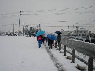 7時に外を見ると、うっすり雪景色