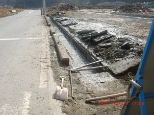 校庭から12メートルほど高台に移って約1分後、ごう音と共に「茶色の水壁」が姿を現した。3階建ての校舎はのみ込まれ、逃げ遅れた人や家は流された。