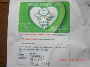 この度は、臓器提供意思のご登録をありがとうございました。