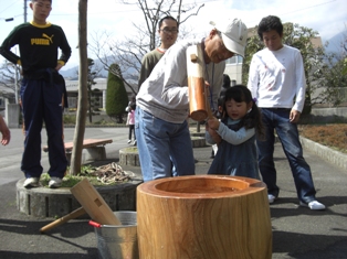 『チーム南アルプス』は餅をついて販売します。