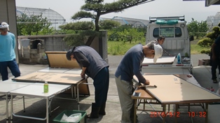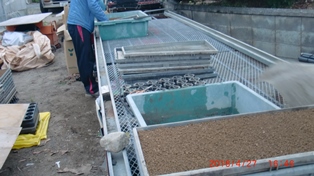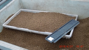 育苗箱に用土を入れる作業